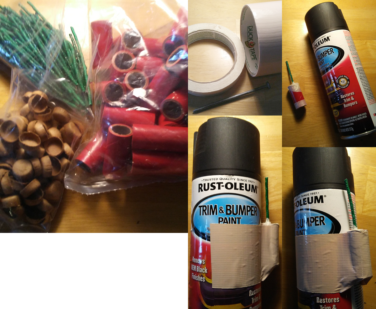 -- !REMEMBER THAT !SUCH WILL RESULT IN A "LOW-GRADE WEAKER BLACK POWDER" ("GUN POWDER"). WHICH WILL BE "SAFER" !OF COURSE. "SAFER" THAT'S OUR INTENT !HERE. "SAFER" !YET POWERFUL ENOUGH TO DO THEY JOB THOUGH. WHICH IS TO "EXPLODE" AND TO "RUPTURE" THE "AUTO SPRAY PAINT AEROSOL CAN". !THAT'S ALL. - !VIEW MY PICTORIAL EXAMPLES HERE BELOW: - ![]() !NOTE; THAT THE "FUSE" THAT'S FITTED INTO THE "FIREWORK". INTO A "2.5 TO 2.7 MILLIMETERS DIAMETER HOLE". WITH "MASKING-TAPE" TO SECURE THE FUSE THEN-AFTER. SO THAT IT !WON'T "SLIP-OUT" OF THE FIREWORK, ONCE THE COMPLETE BOMB IS "THROWN". - NOTE; THAT YOU CAN USE THE "TIP" OF A "4 INCH" NAIL" IN ORDER TO "PUSH" THE HOLE/S INTO THE "FIREWORK/S". AS I HAD. - !NOTE; THAT THE "3 INCH LONG FUSE" ("10 - 13 SECOND TOTAL BURN FUSE") THAT'S STICKING-OUT "2 INCHES". AND INSERTED AT AN ANGLE, INTO THE SIDE OF THE "FIREWORK". !OR WITHIN THE TOP OF THE "FIREWORK". !NOTE; ALSO SECURE THE "FIREWORK" TO THE CAN WITH ATLEAST "1 WRAP" WITH THE "DUCT/DUCK TAPE". - NOTE; !SUCH FUSES THAT CAN BE ORDERED "ONLINE". !EITHER "PRE-CUT FUSES" OR "CUT-ABLE FUSES". MY SUGGESTION IS TO ORDER THE "PRE-CUT "VISCO FUSES" FROM: - !OKAY. THE WAY